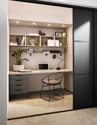 In der heutigen schnelllebigen Welt wird Flexibilität am Arbeitsplatz immer wichtiger. Mit unserem innovativen Gleittürsystem können Sie Ihr Home Office diskret und stilvoll verbergen, wenn es nicht in Gebrauch ist. Unsere Gleittüren bieten nicht nur Funktionalität, sondern auch Ästhetik, um den Raum zu optimieren und gleichzeitig eine ästhetisch ansprechende Umgebung zu schaffen.