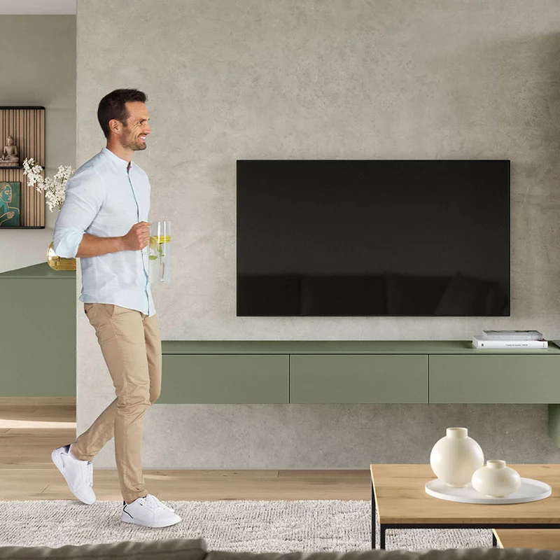 Unser beliebtes SENSO-Programm erweitern wir um die Farbe Schwarz und die beiden modernen Pastelltöne Olive und Sky. Die SENSO-Front bietet eine extrem matte Oberfläche, die zudem besonders unempfindlich und kratzbeständig ist. Die Melaminspanplatte der SENSO besteht zu 100 % aus recyceltem Material. Ihre Oberfläche ist zudem vollständig recycelbar. Daher ist die SENSO auch mit dem Blauen Engel ausgezeichnet.