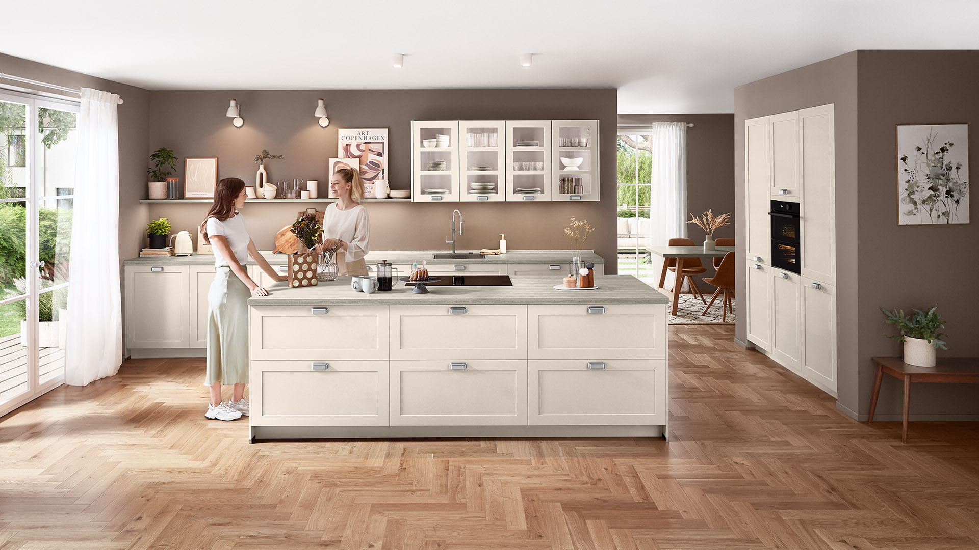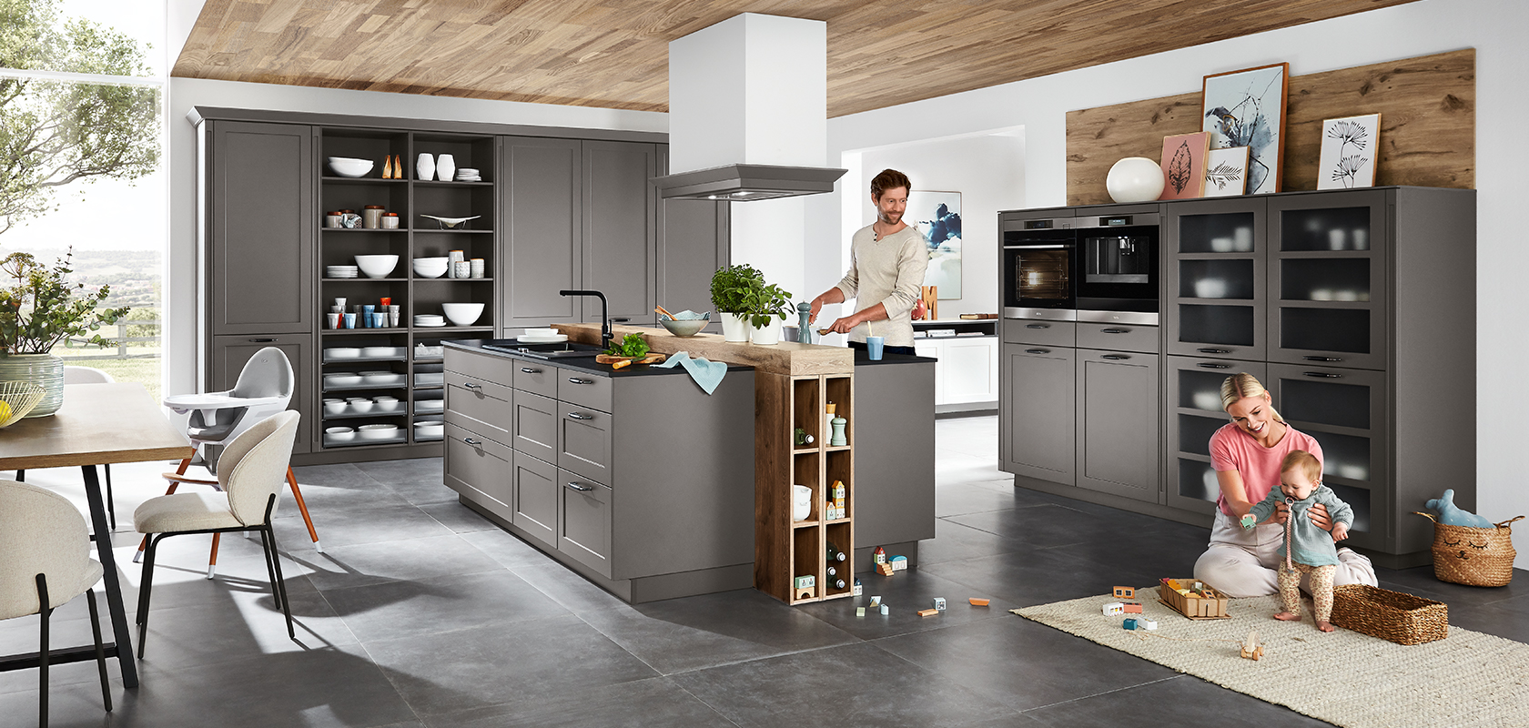 Schwarz ist in der Mode wie auch im Interior Design ein stilprägender Klassiker. Mit klassischer Rahmenstruktur erhält der Farbton eine moderne Bühne: reduziert und ausdrucksstark. Die Frontfarbe vereint traditionelle Werte mit urbaner Ästhetik und spricht Kunden an, die eine designbewusste Landhausinterpretation schätzen