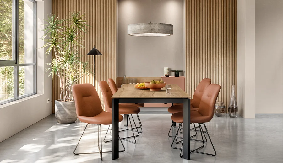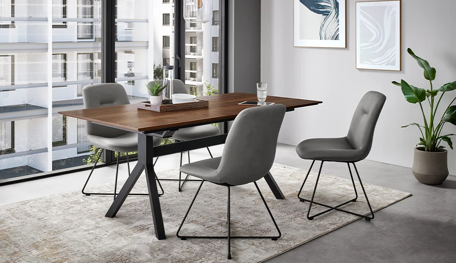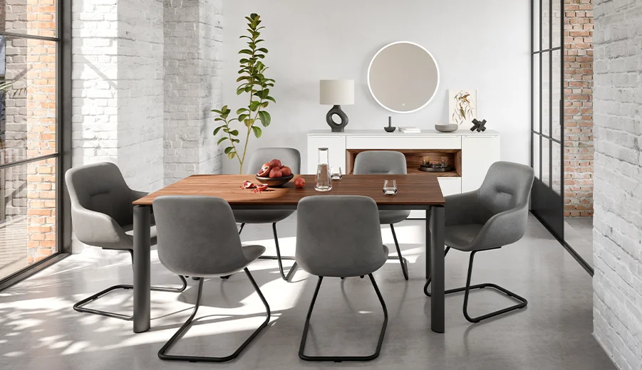Reduziertes Design, durchdachte Funktion: Beim Tokio Esstisch sorgt der Synchro-Frontslide-Auszug für eine gleichmäßige Erweiterung der Tischplatte – präzise, leicht und intuitiv. Im Video sehen Sie, wie sich formschöne Gestaltung und praktischer Nutzen ideal ergänzen.
