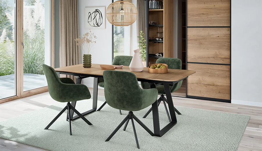 Zusätzlich sind alle Tische auch ausziehbar lieferbar und bieten so eine praktische und flexible Lösung für gesellige Runden und besondere Anlässe. Entdecken Sie die Vielseitigkeit und Eleganz unserer neuen Esstische.
