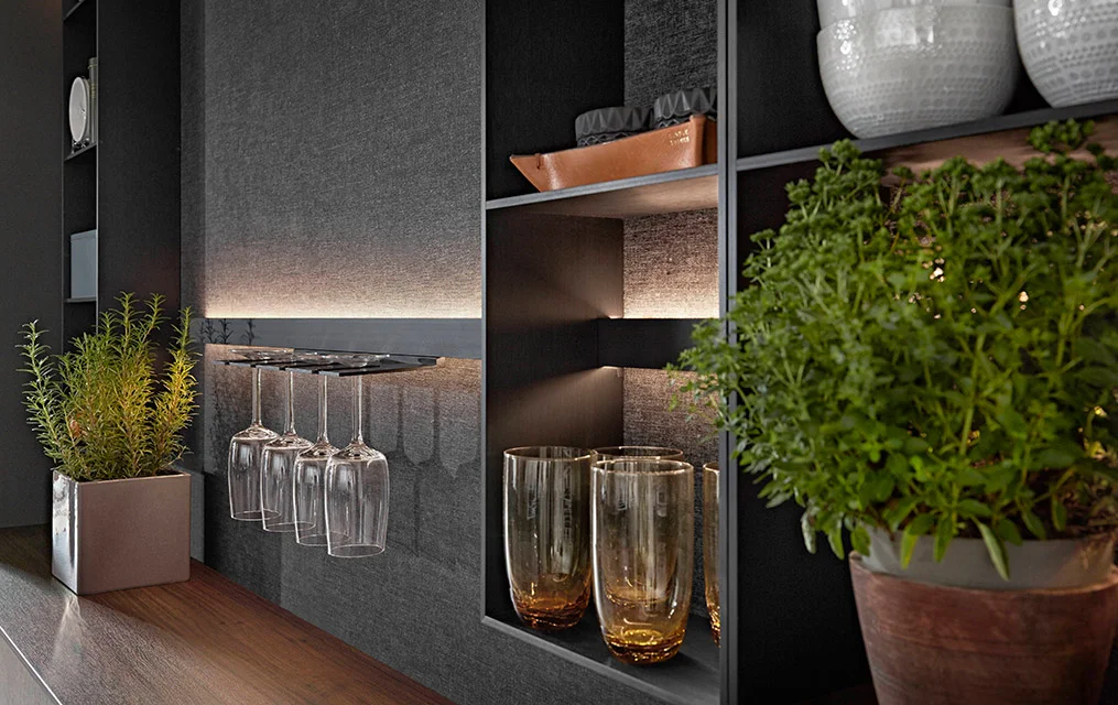 Die Regaleinsätze Case bieten überraschend vielfältige Gestaltungsoptionen für den Wohnbereich, Küche und Bad: Case setzt farbliche Akzente, erweitert den Stauraum und bietet Platz für dekorative Lieblingsstücke – optional auch mit Beleuchtung und Glasböden. So lässt sich jedes Einrichtungskonzept ohne viel Aufwand raumübergreifend und durchgängig gestalten.