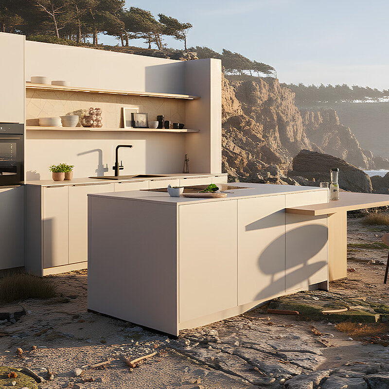 Several front programmes from nobilia are equipped with the Blauen Engel awarded, one of the most recognised symbols of trust for sustainable products among end consumers. But our SENSO can do even more: it is produced without the use of fresh fibres and can be completely recycled at the end of its service life. Circular economy that convinces.