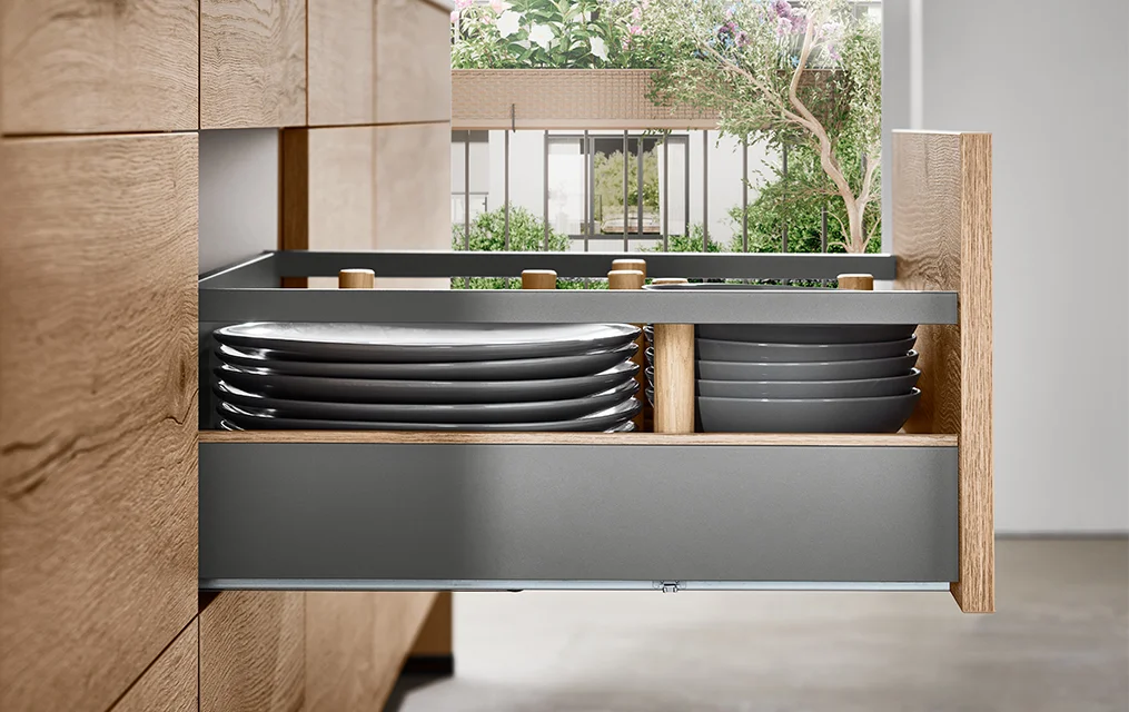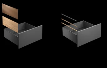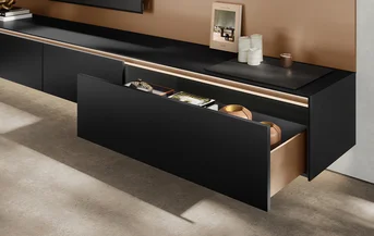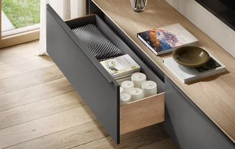 Experience high-tech with maximum precision in minimum space. The nBOX drawer makes ideal use of the available space thanks to a narrow frame and concealed guide underneath the drawer.