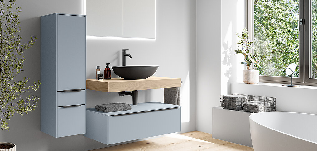 Our new, innovative drawer and pull-out system nBOX and matching bathroom accessories make it easy to keep your bathroom tidy and create a coordinated look.