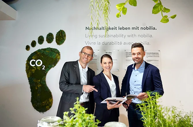 La mayoría de las medidas para reducir las emisiones de CO₂ están estrechamente relacionadas con nuestros productos y nuestra propia producción. Sin embargo, otros enfoques para una actuación responsable y sostenible van más allá, abarcando todo el ciclo de vida de un mueble nobilia y teniendo en cuenta factores «blandos» como la responsabilidad social.