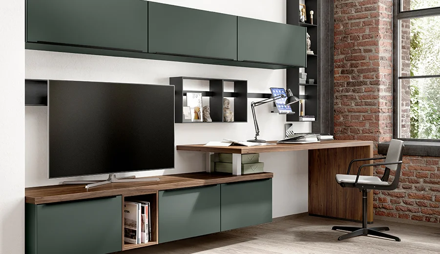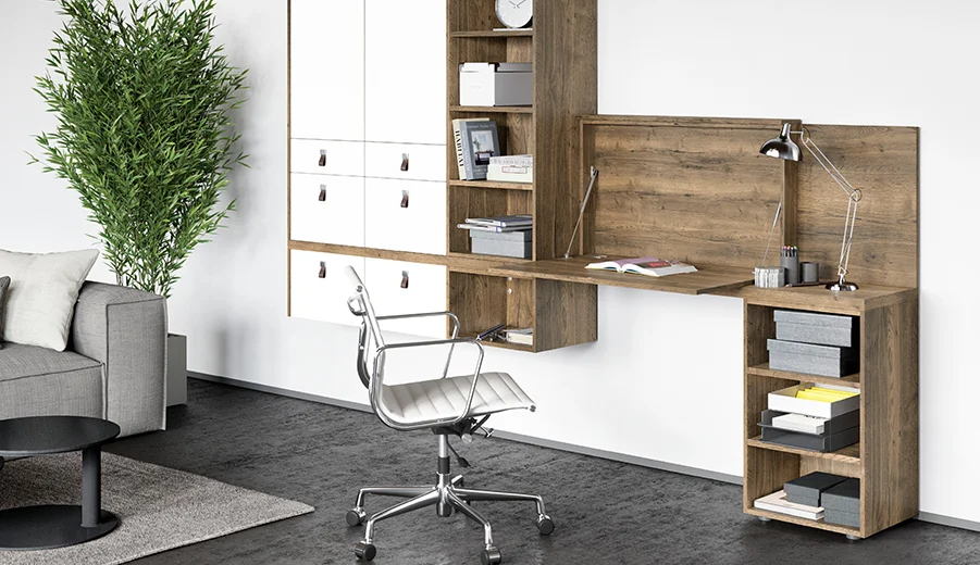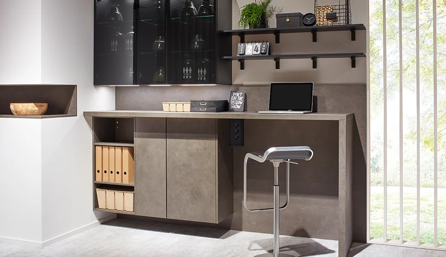 El trabajo se traslada cada vez más a la oficina en casa. Para garantizar un equipamiento óptimo se pueden realizar puestos de trabajo modernos con nobilia. Teletrabajo y mobiliario atractivo: ¡no es ningún problema con nobilia! Nuestros conceptos de muebles modulares le permiten combinar de forma fascinante las áreas de trabajo y de estar. Sólo deseamos que trabaje más cómodamente en casa. No importa la superficie, con la planificación adecuada se puede integrar un puesto de trabajo perfectamente en cualquier entorno vital.