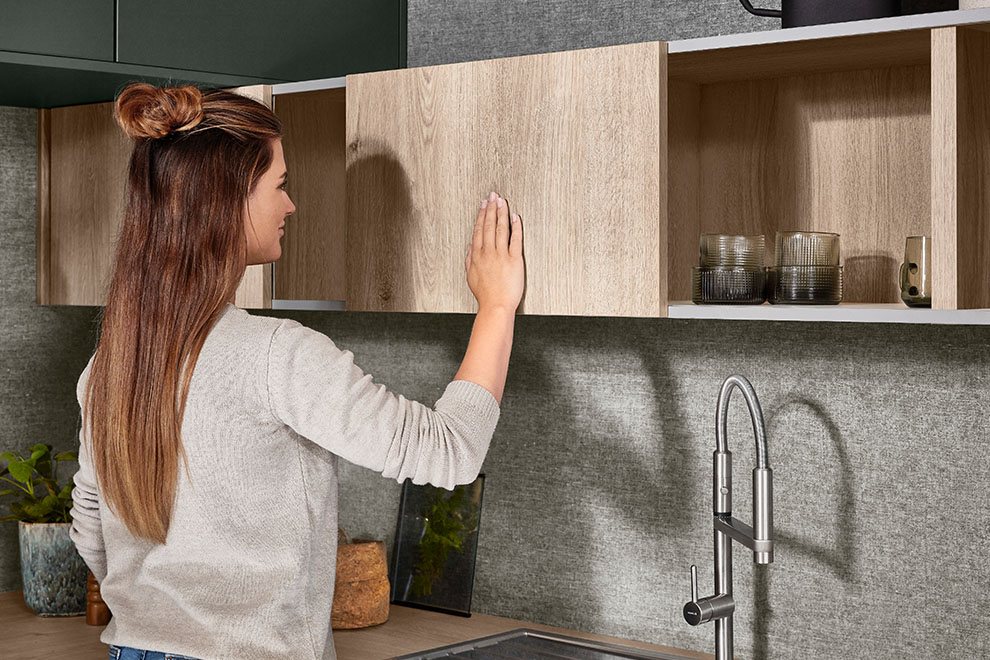 Nos façades anti-traces de doigts sont dotées d'un revêtement anti-traces de doigts innovant. Ce revêtement rend la surface particulièrement robuste, insensible et plus résistante aux empreintes digitales gênantes. Absolument adapté à la vie quotidienne !