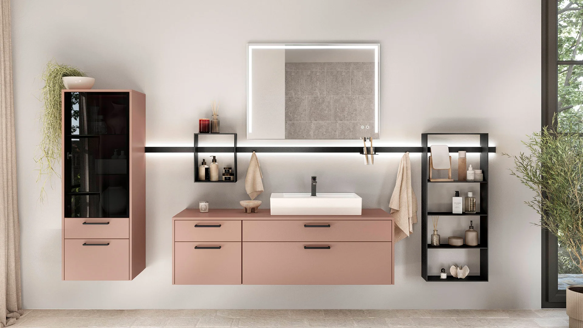 Quand chaque aspect est mûrement réfléchi, le confort est à son summum. Notre système de tiroir nBOX se fond parfaitement dans votre salle de bains grâce à des profils et des accessoires échangeables, que votre conception soit unicolore, boisée ou aux accents métalliques scintillants.