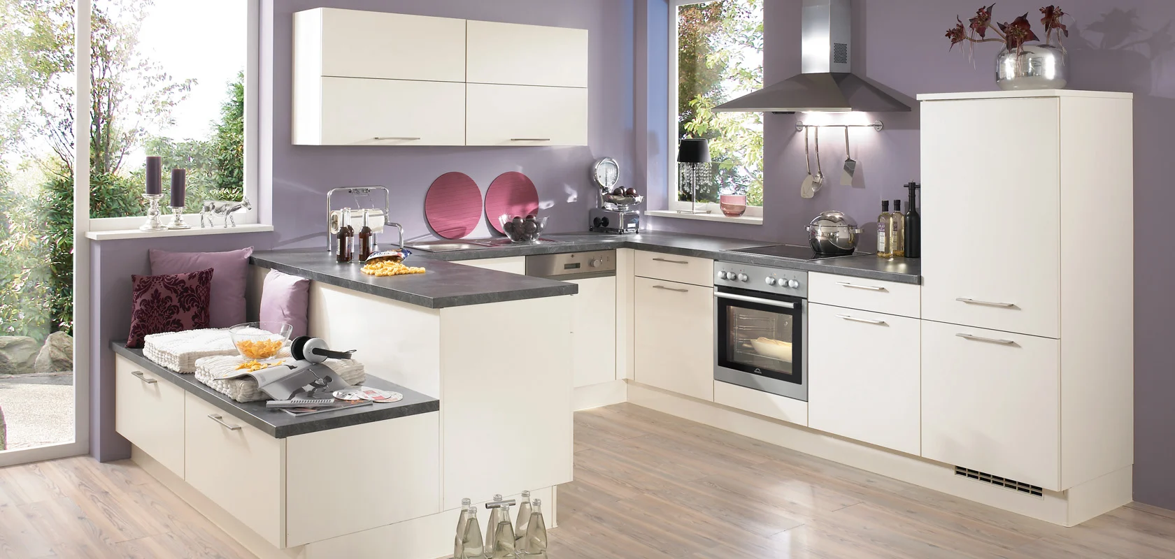 A volte le tendenze nel campo dell'arredamento sono di breve durata, e per chi desidera una cucina dal design moderno anche dopo molti anni consigliamo di scegliere motivi chiari e a tinta unita. Le possibilità di progettazione sono quasi illimitate e vanno da soluzioni tono su tono ad accostamenti interessanti con cromatismi inaspettati generati dalla tonalità del vetro e dai motivi del piano di lavoro.