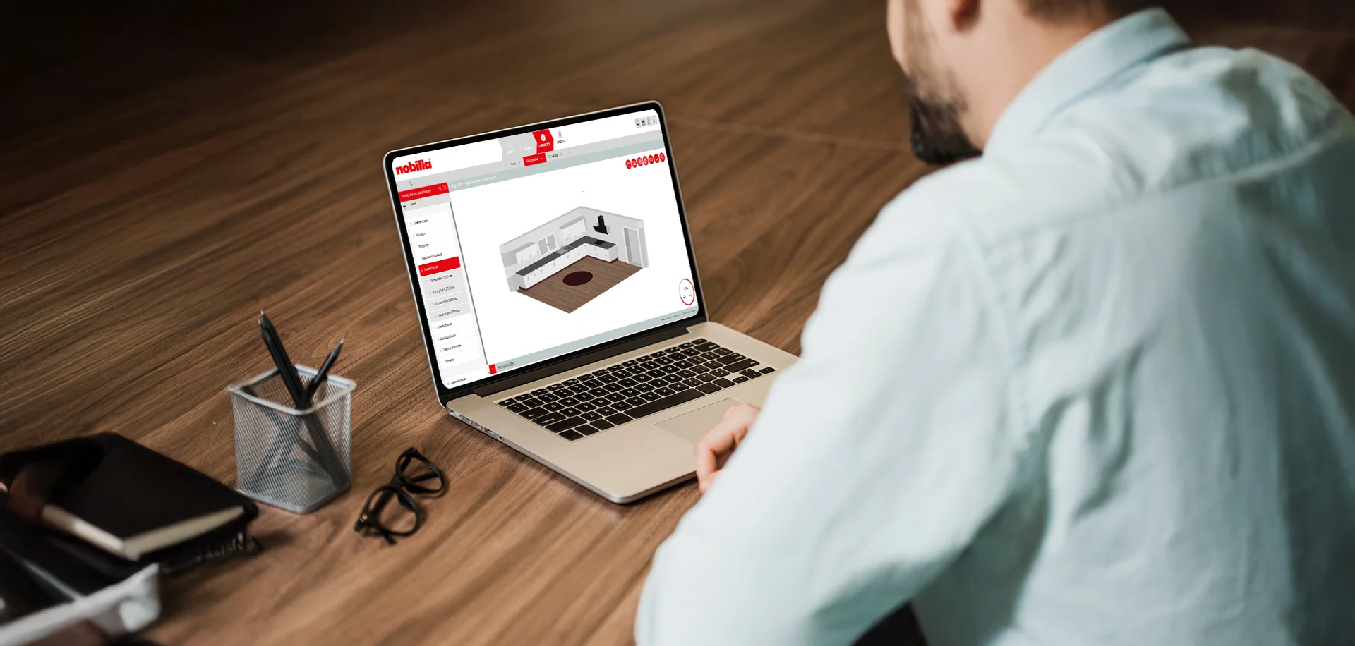 Progettate la vostra cucina secondo i vostri desideri! Iniziate partendo direttamente dalla pianta e integrate tutti i componenti. Vi piace il risultato? Con un clic potete stampare la progettazione della vostra cucina con tutti i relativi dettagli, oppure salvarla, dopo esservi precedentemente registrati, e proseguire in qualsiasi momento, facendovi inviare la progettazione via e-mail. In questo modo siete preparati al meglio per discutere con il vostro rivenditore specializzato in merito alla realizzazione della vostra cucina componibile nobilia.