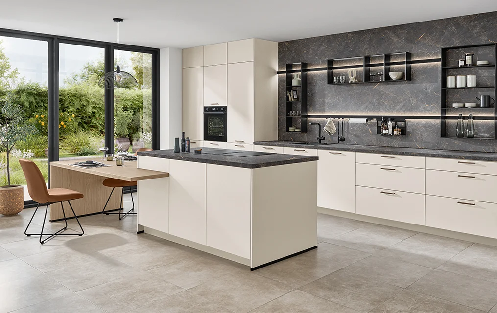 De anti-vingerafdruk voorkant biedt een extreem mat oppervlak dankzij UV-straling. Hierdoor voelt dit gelakte front bijzonder zacht en aangenaam aan.
