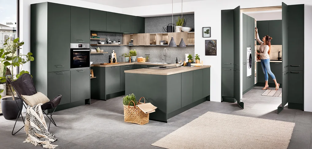 Zelfs kleine keukens kunnen veel herbergen als je de juiste elementen kiest. Smalle uittrekelementen, hoge kasten met opbergruimte tot aan het plafond of vernuftige hoekoplossingen zorgen ervoor dat er ook in kleine ruimtes voldoende ruimte is. nobilia laat met zijn interieurinrichting zien dat comfort en design ook in compacte keukens probleemloos samengaan.