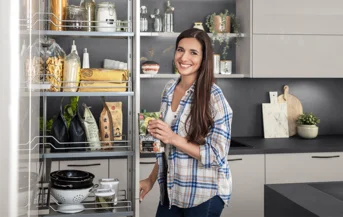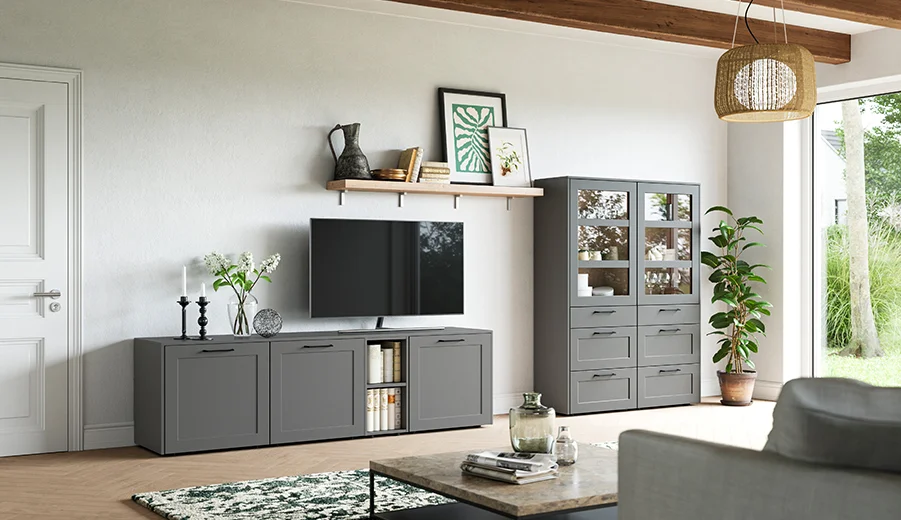 Zin in meer vrijgevigheid en harmonie? Zet de elementen in de decors eiken Bergamo Look en Grafietzwart gewoon door in het woongedeelte. Dit zorgt voor een uniforme stijl, die ook tot uiting komt in het gastentoilet met anti-fingerprint-front en stijlvol relingsysteem Sign Emotion in zwart.