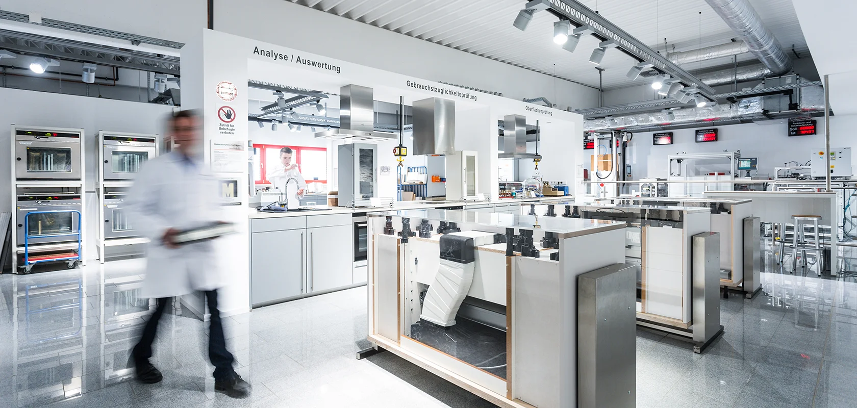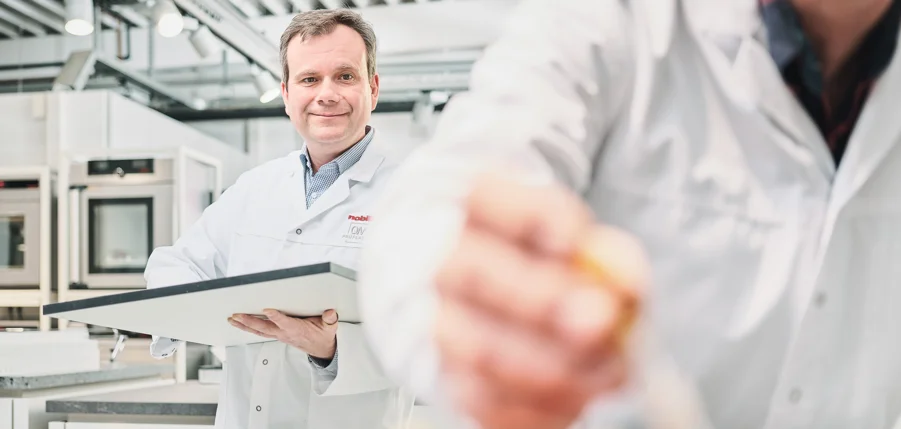 Tylko meble, które pomyślnie przejdą przez testy jakościowe w laboratorium badawczym nobilia, będą przyjęte do nowej kolekcji. Laboratorium badawcze QC jest ważnym elementem w strategii "zero błędów" firmy nobilia.