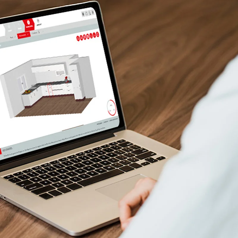 Zaprojektuj kuchnię według Twoich życzeń! Rozpocznij bezpośrednio od rzutu poziomego i zintegruj wszystkie elementy. Czy podoba Ci się rezultat? Jednym kliknięciem możesz wydrukować projekt Twojej kuchni ze wszystkimi szczegółami – albo po uprzednim zarejestrowaniu się – wprowadzić do pamięci; w każdej chwili dalej kontynuować i wysłać na Twój adres e-mail. Teraz jesteś dobrze przygotowany do rozmowy ze specjalistą w placówce handlowej na temat realizacji kuchni na wymiar.